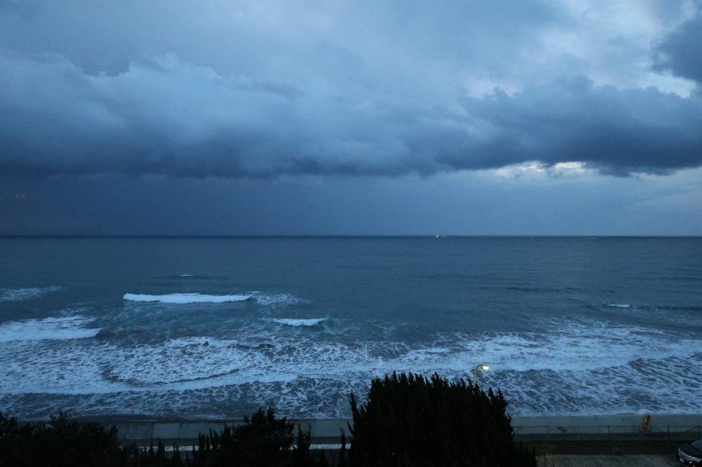 一瞬空がオレンジ色に光りました。稲光でしょうか。