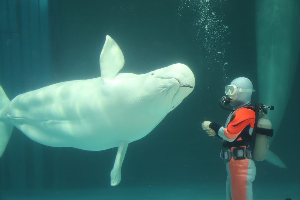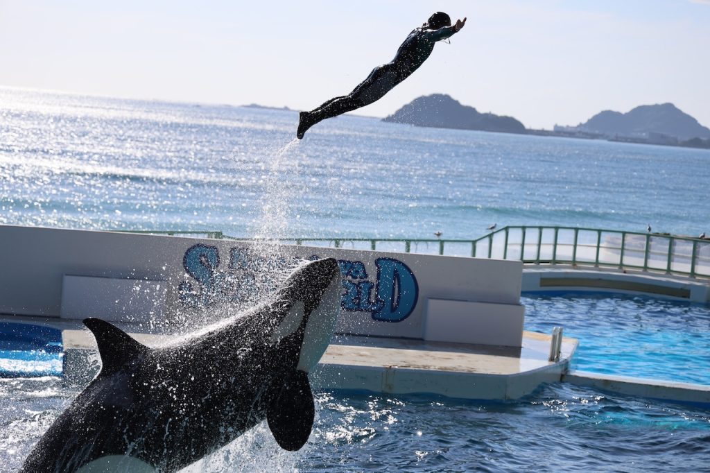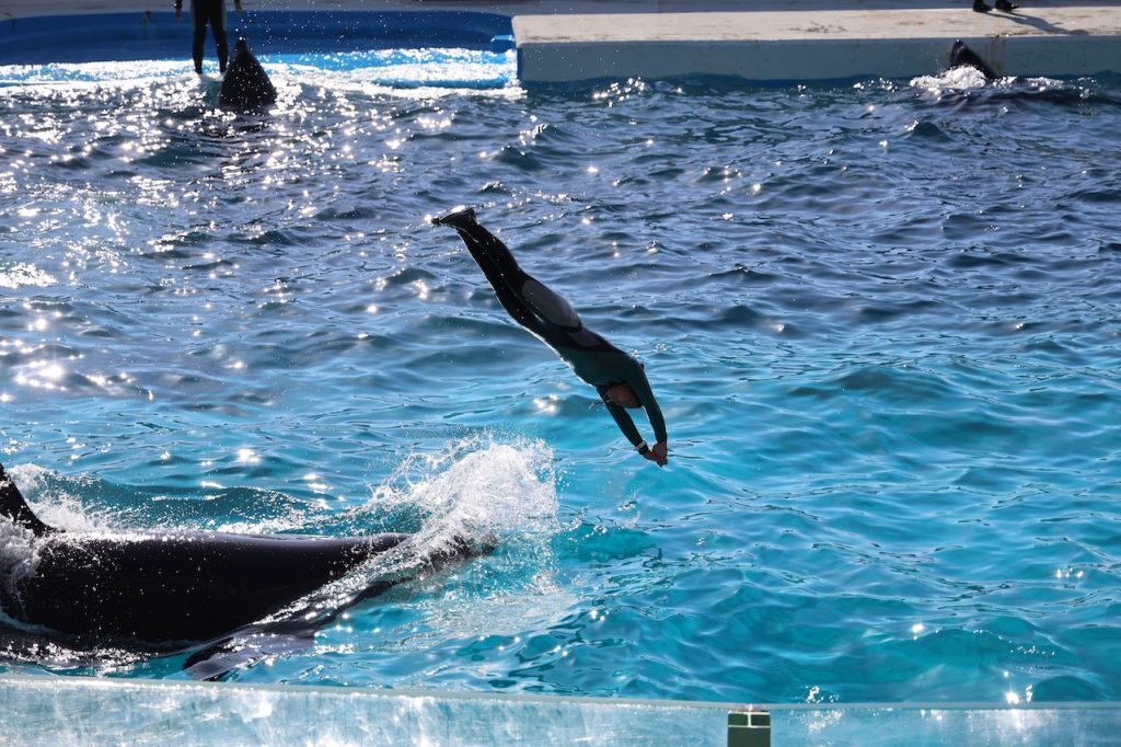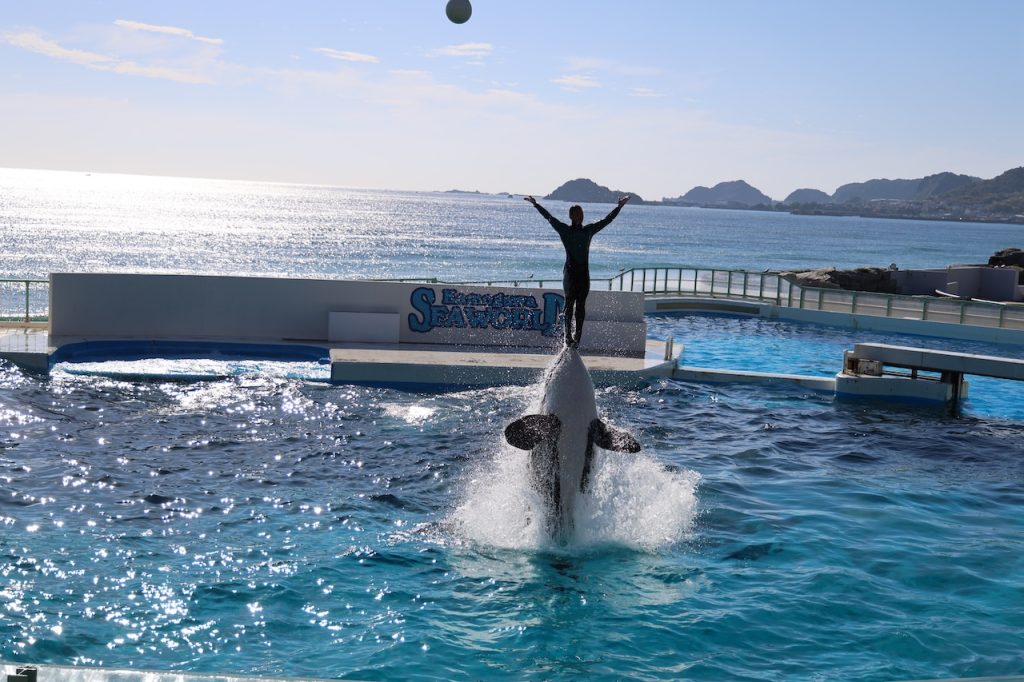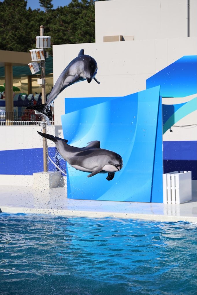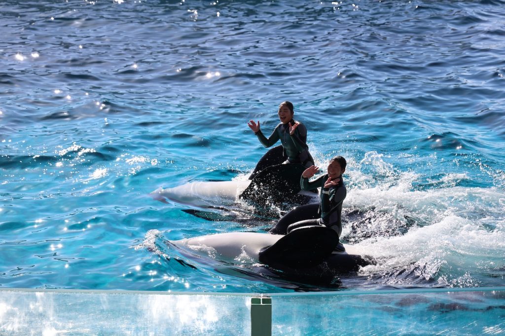 一体どうやって訓練したのか不思議な、複雑なショーでした。