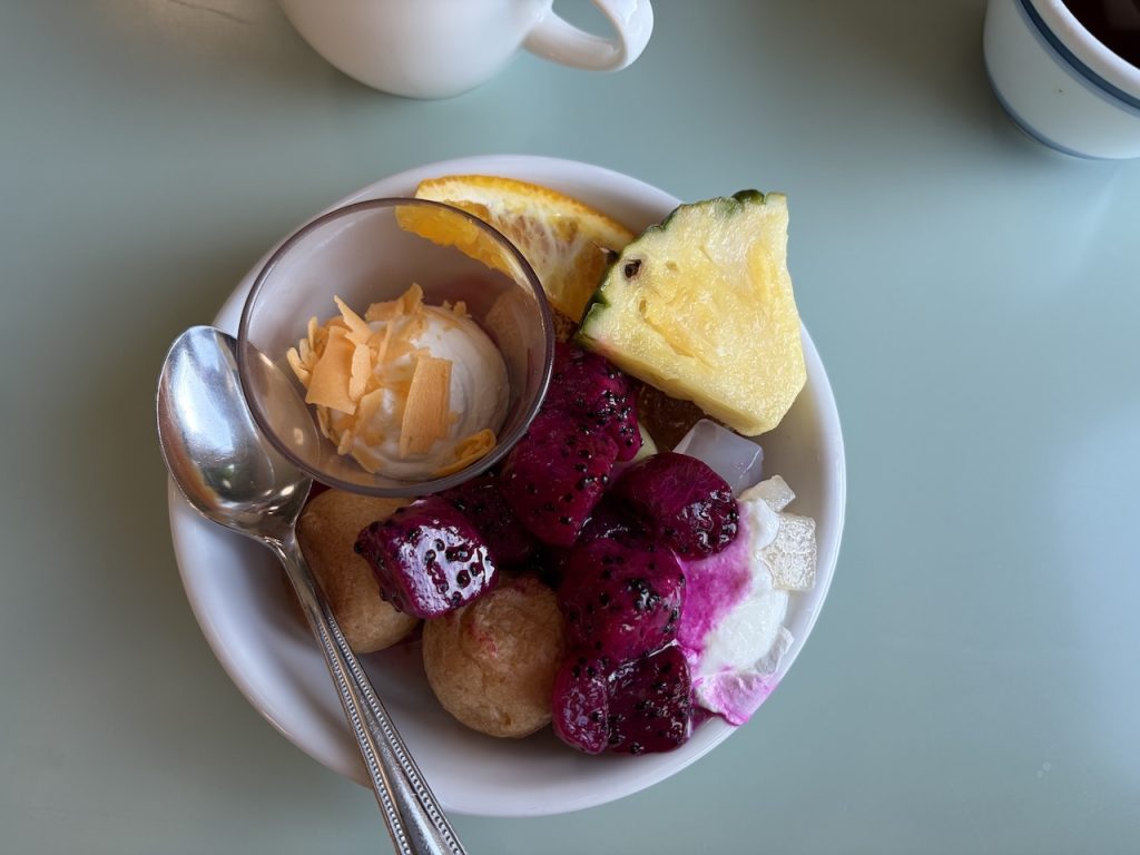 朝はギトギトねっとりのチョコレートケーキを半分こしました。