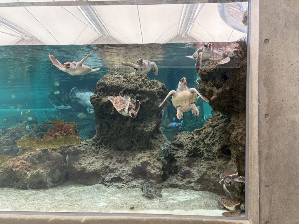朝の探検ではある水槽で1匹いるはずの亀がいなくてみんなで探しましたが、今回はオットがカメだまりを見つけました。仲良しで可愛い。