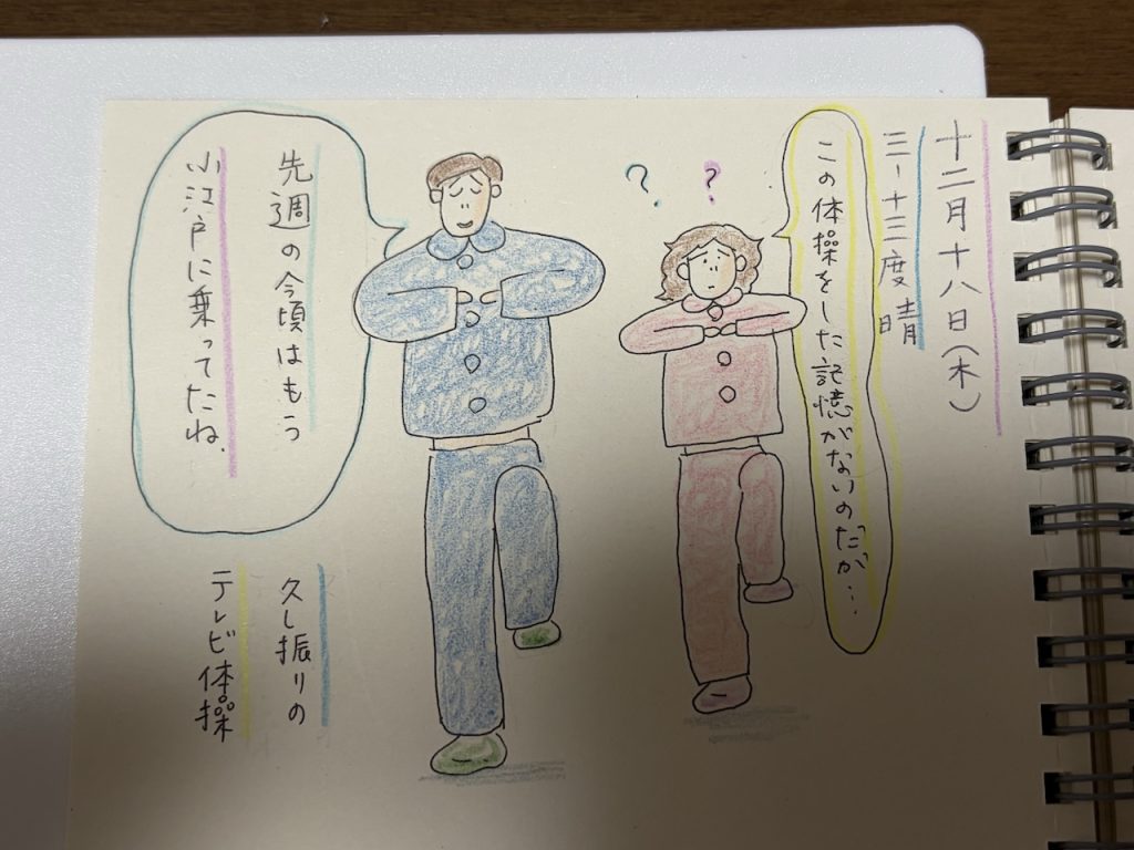 カレンダーを見るともう3週目。こんな体操をした記憶がなく呟いてみたら、オットが先週の今頃は、、、と話しました。