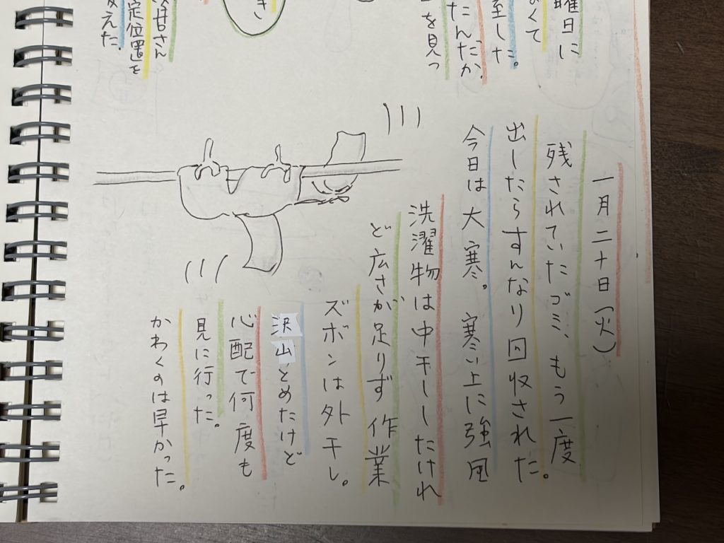 一期一会さんは珍しく黙々と絵を描いていました。にぎやかさんが欠席をしているから、お話し相手がいないのかもしれません。
