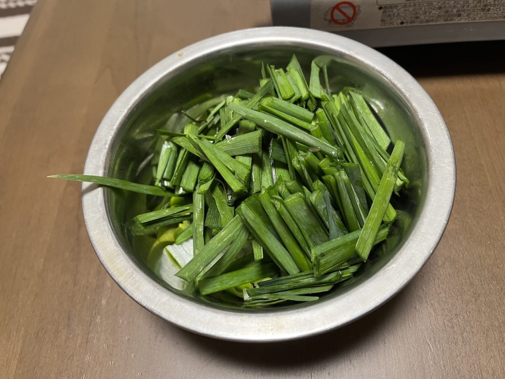 青ネギと高知県産のニラをどさっと乗せていただきまーす。