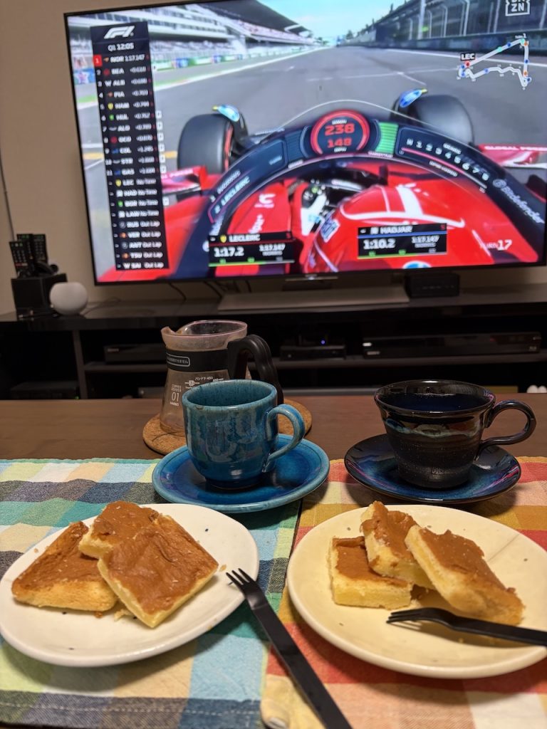 あの美味しいケーキと同じ味😆いつぞやいただいたコーヒーを淹れてF1観戦。