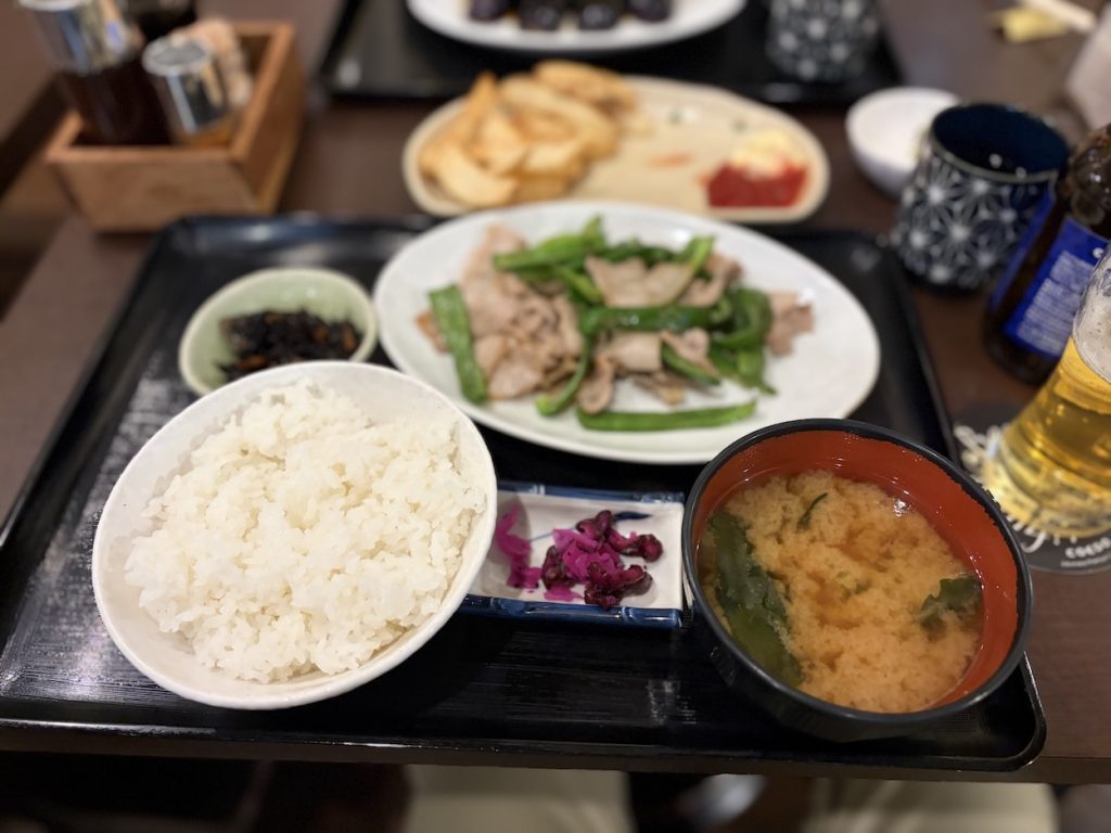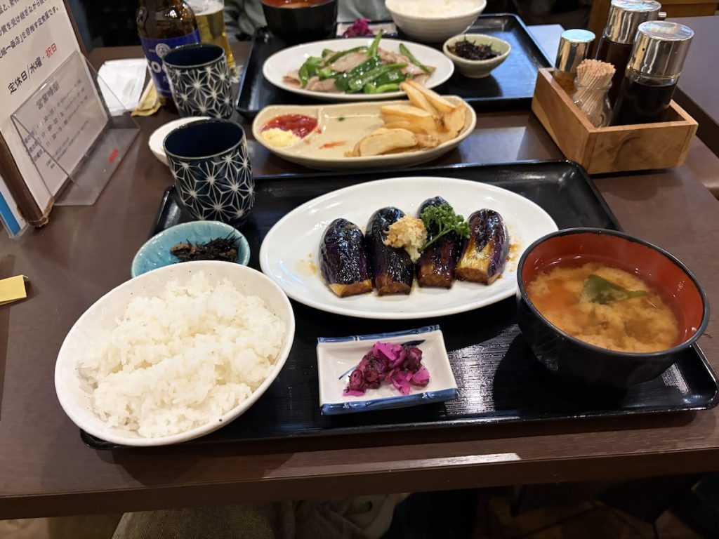 夕方、図書館でしこたま本を借りた後、いつもの定食屋さんへ。