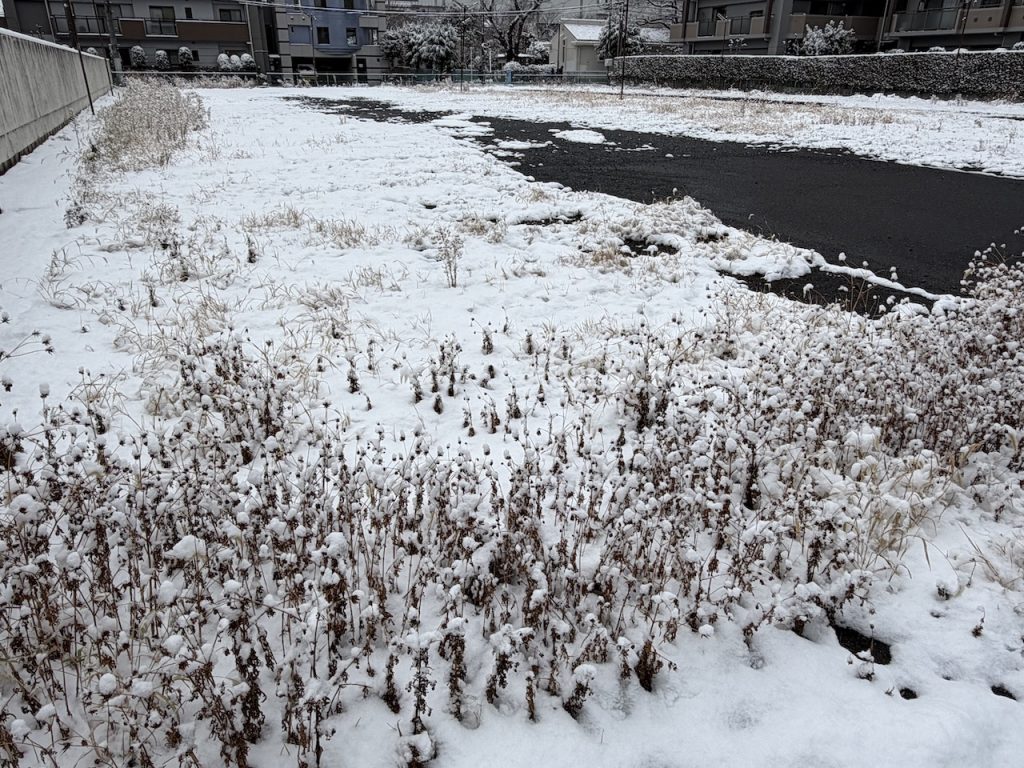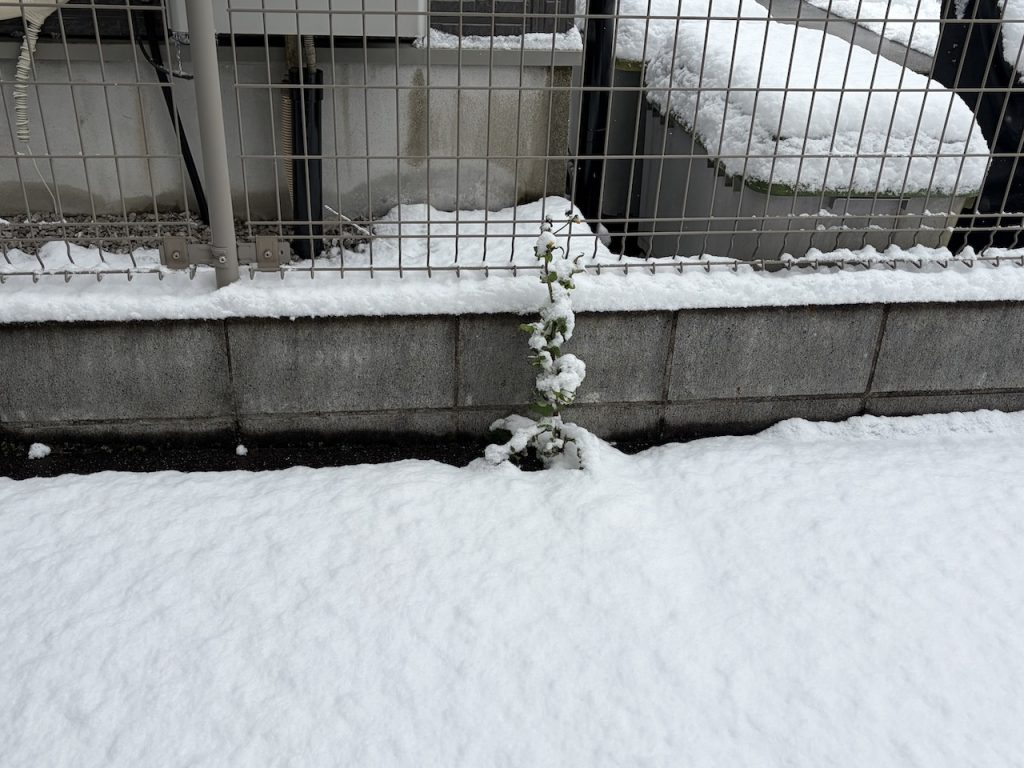 ベランダの隅に鉢が雪に埋まっていました。