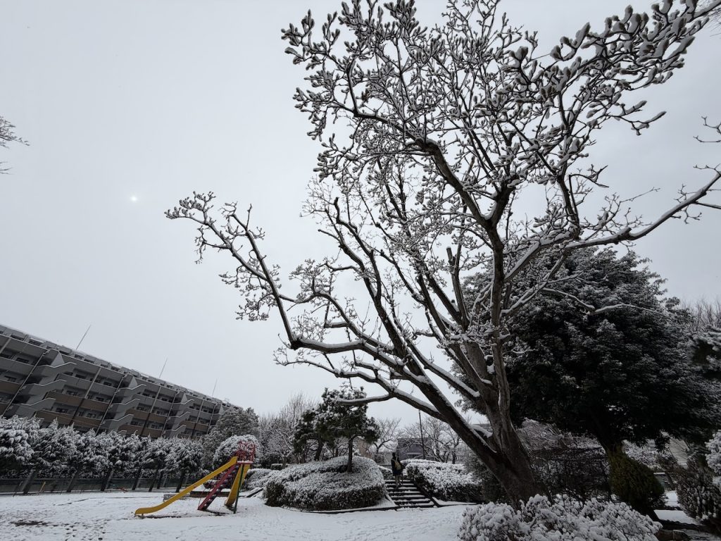 夜が明けると、、、雪景色でした。