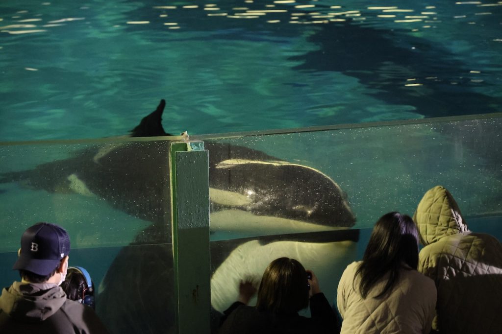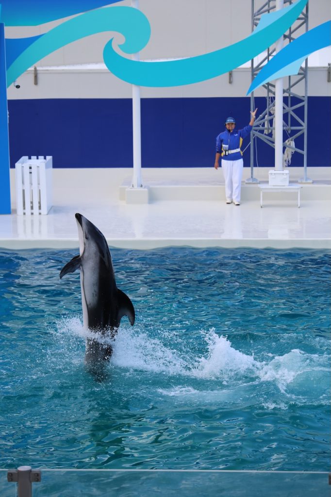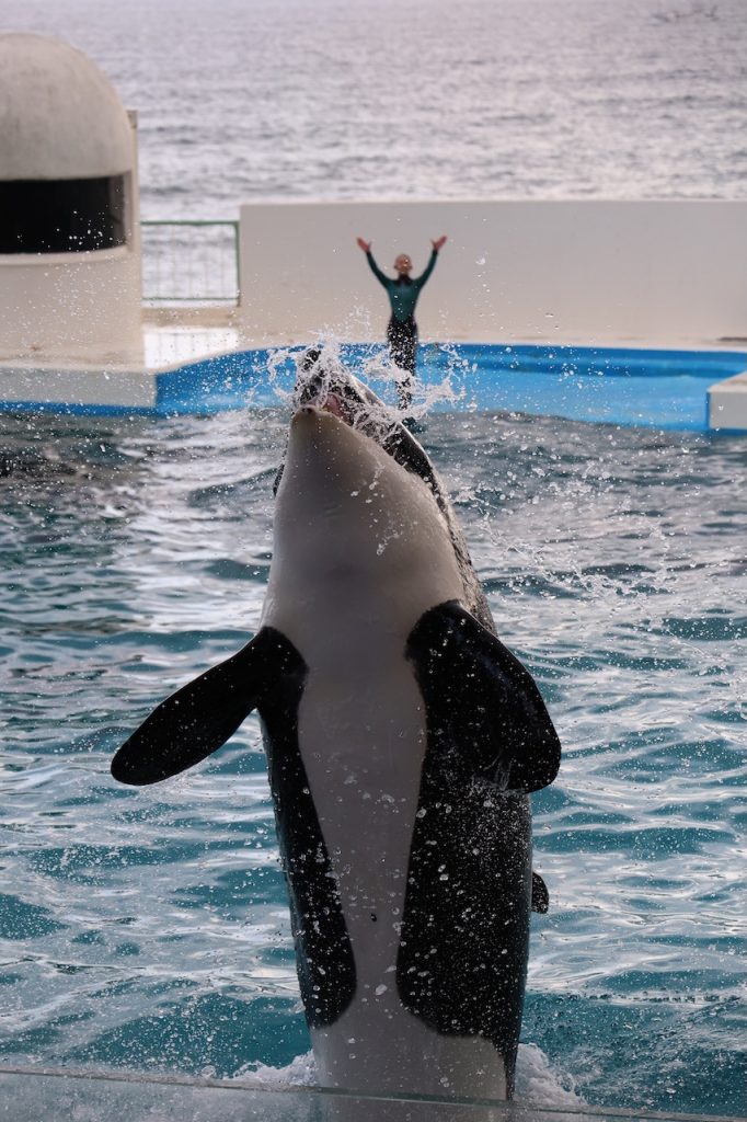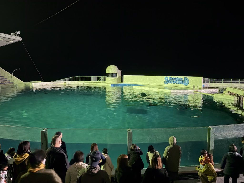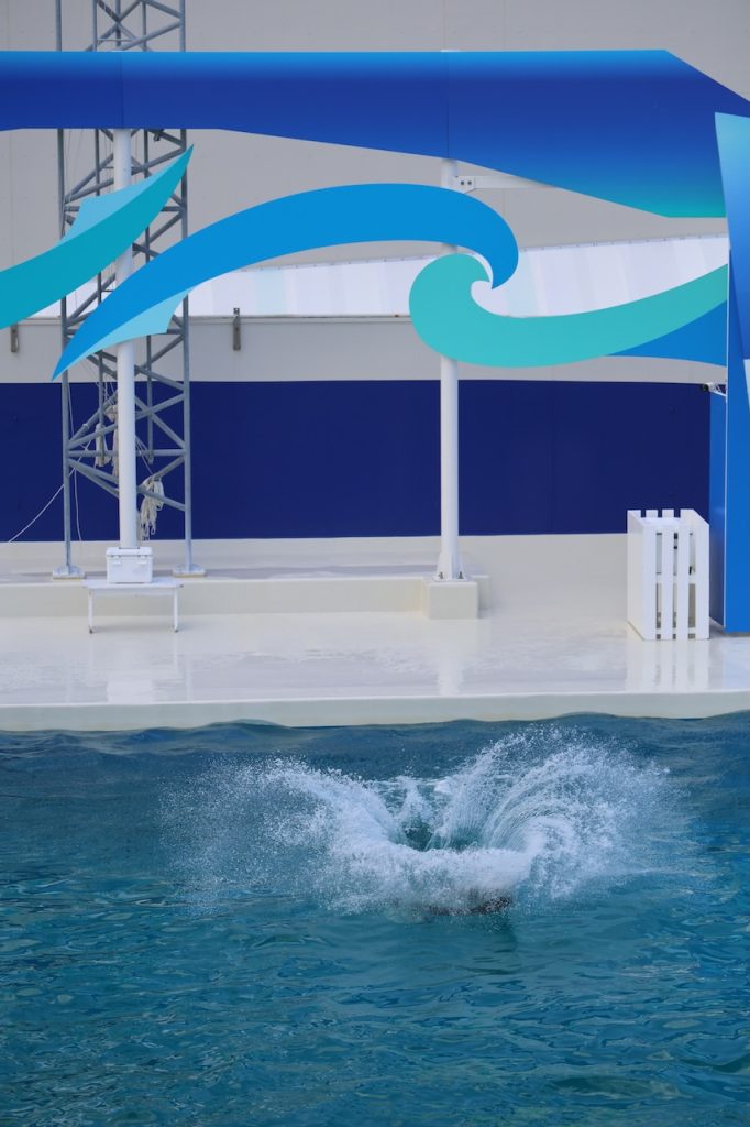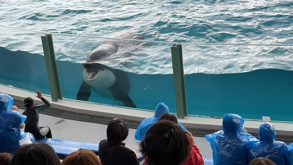 何度も「最後列まで水がかかる可能性があります。」とアナウンスがあったのに、一発めの水飛沫で水浸しになった大勢の人が移動を始めました。(ちなみに移動は禁止されています。)