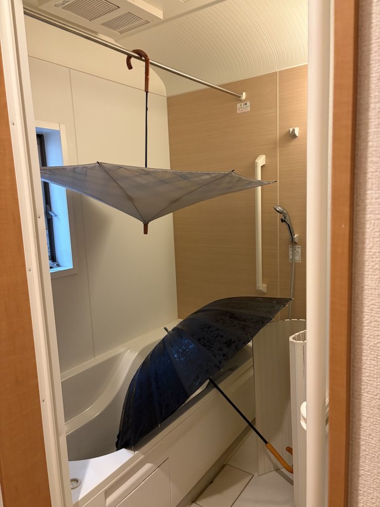 以前傘を畳んだ後、雨上がりに干すのを忘れてしまった事があるので、傘は即水切りするようにしています。