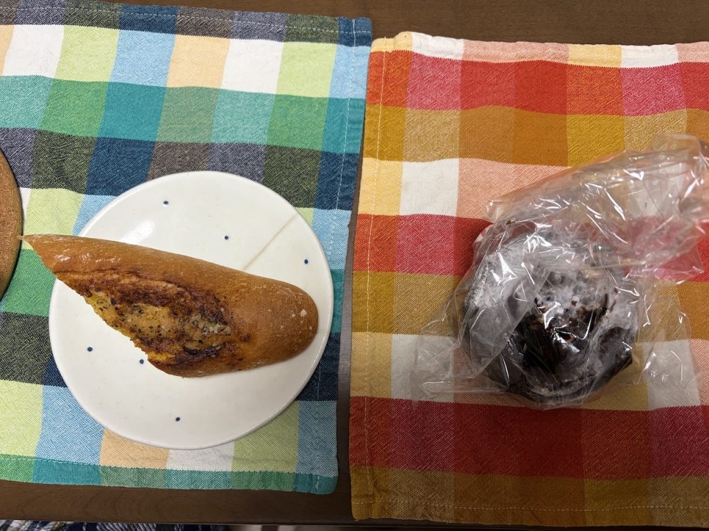 朝は昨日買ったチョコパイを食べました。パイシートもチョコが入っていて真っ黒です。