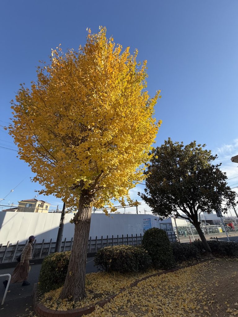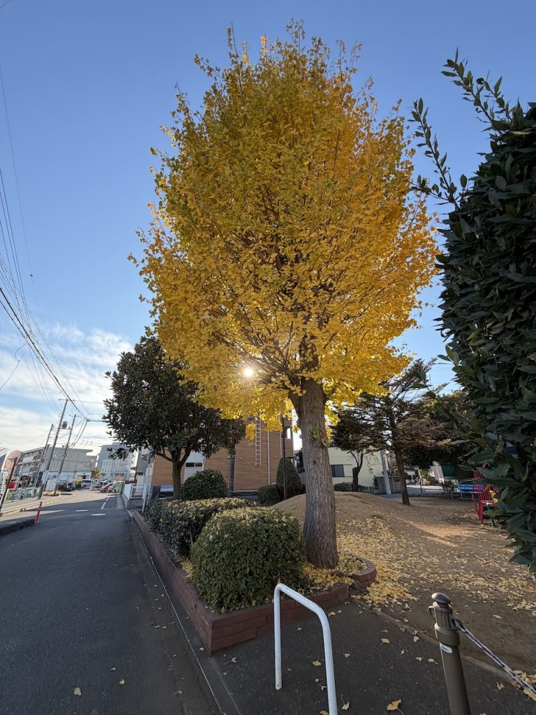 この近くにある銀杏は少し緑色が残っています。
