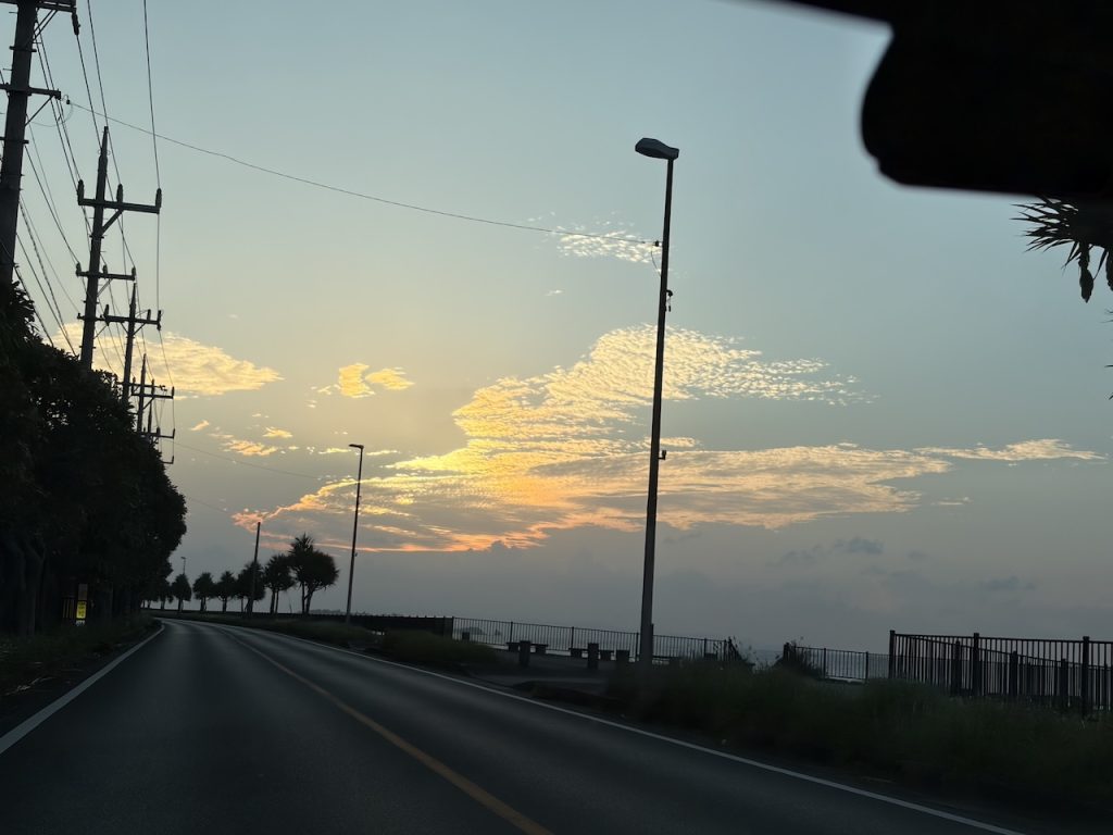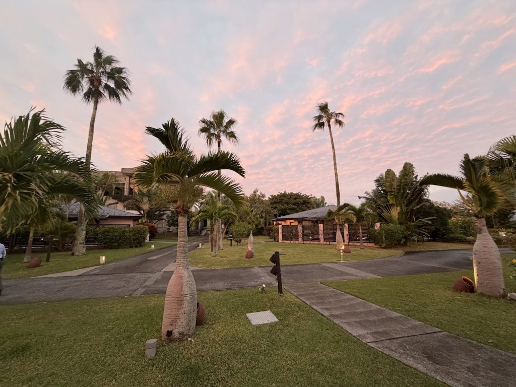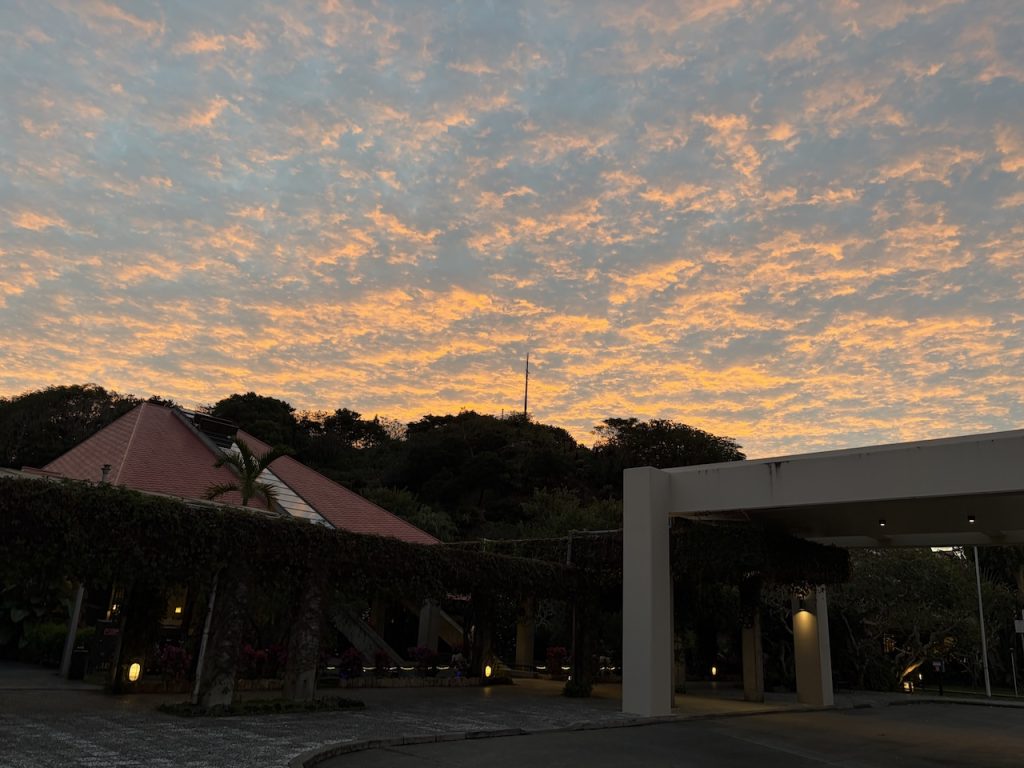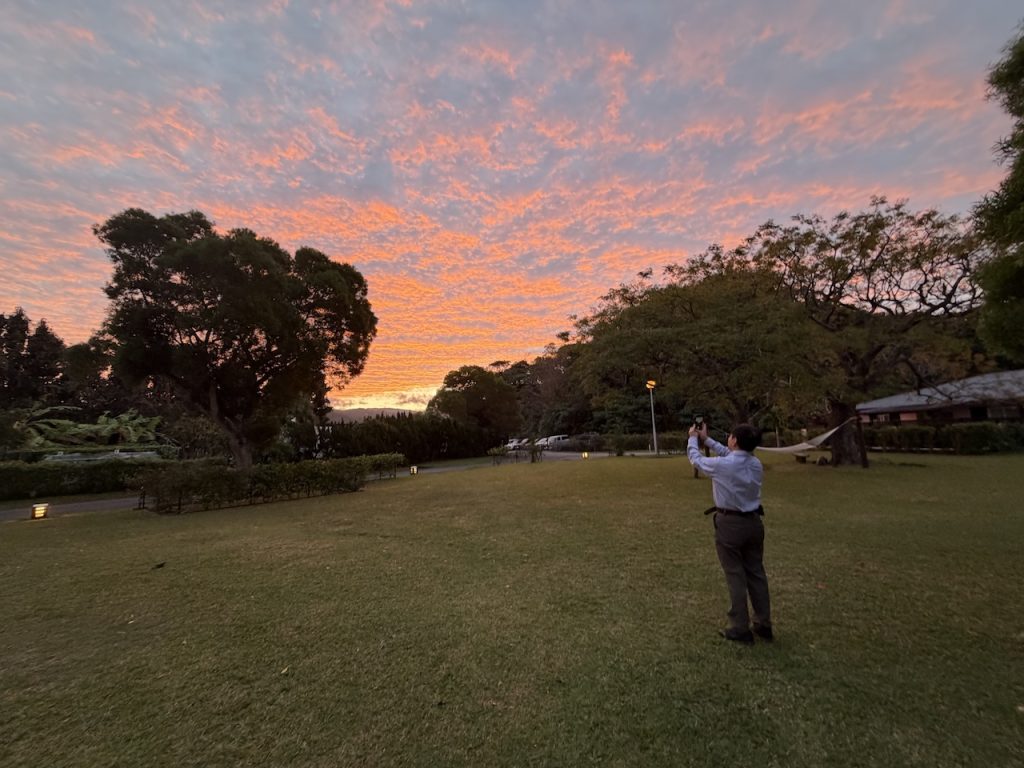 荷物が多かったのでスタッフの方が荷物をカートに乗せてくれたのですが、週末に差し掛かり、対応が混雑してきたようで、我々で持っていくことになりました。カートを、、、返すべきだよね、なんてモタモタしているうちに、楽しみにしていた日の入りを写し損ねてしまいました(笑)