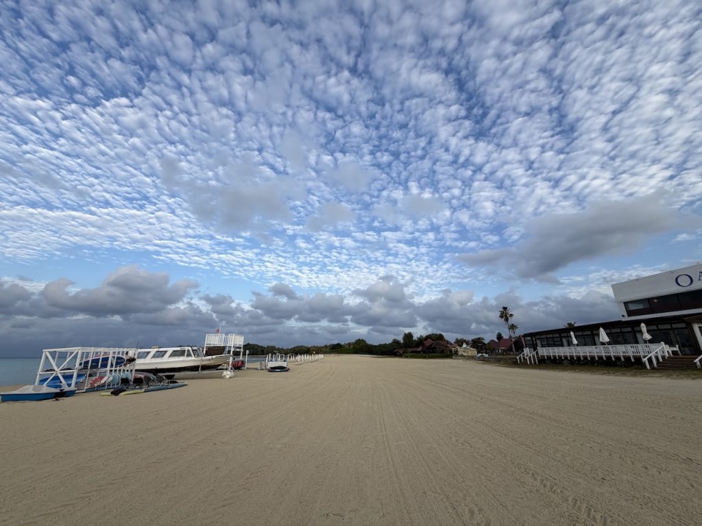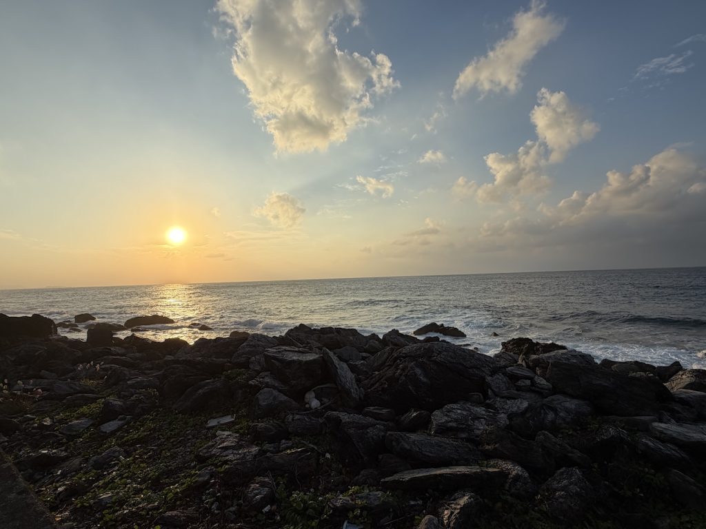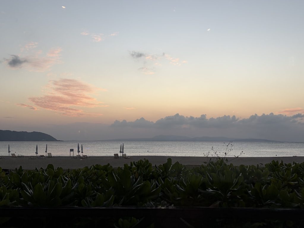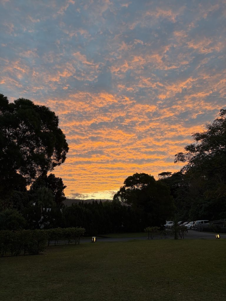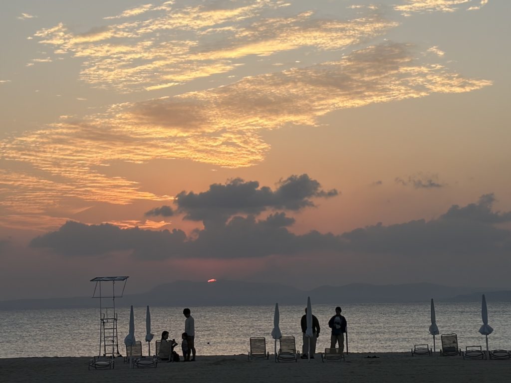 荷物が多かったのでスタッフの方が荷物をカートに乗せてくれたのですが、週末に差し掛かり、対応が混雑してきたようで、我々で持っていくことになりました。カートを、、、返すべきだよね、なんてモタモタしているうちに、楽しみにしていた日の入りを写し損ねてしまいました(笑)