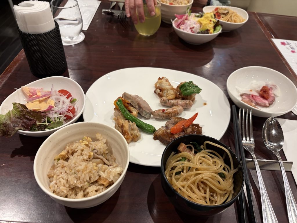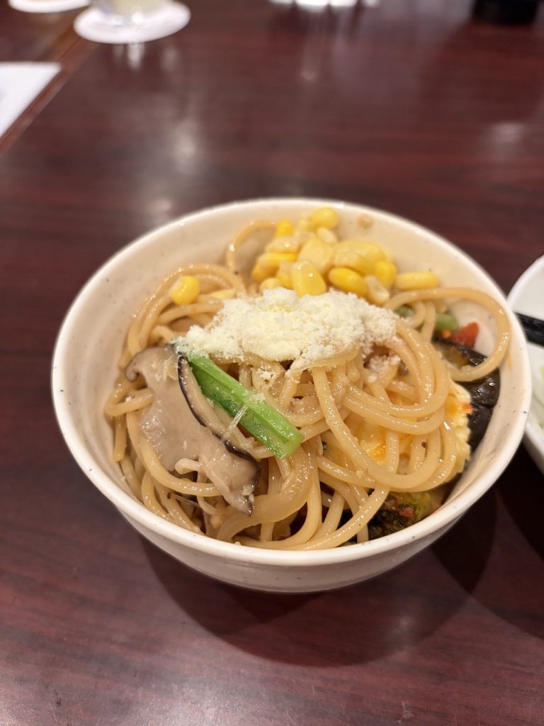 2日目の夜、昨日と違う味だけど美味しいチャーハン。ナポリタンはなかったけれどペペロンチーノがありました。