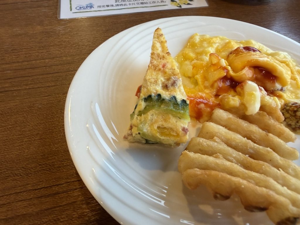 ゴーヤがところどころに入っていて美味しかったです😋