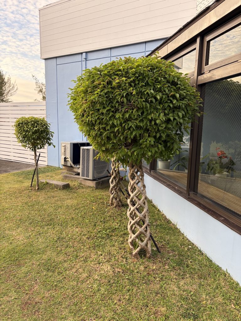 ここまで大きなベンジャミンを初めてみました。名札を見ると「シロガジュマル」と書いてあります。ガジュマルだったのか!?
