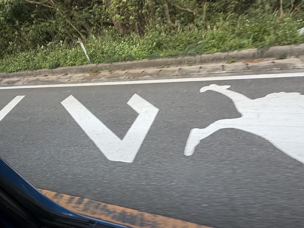 道路の「動物注意」が面白く、撮影しようとするのですが、なかなか、、、。