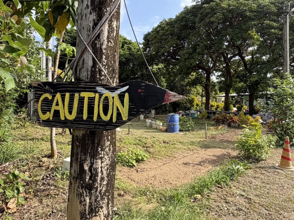 オットが「飛び出し注意」を見つけました。