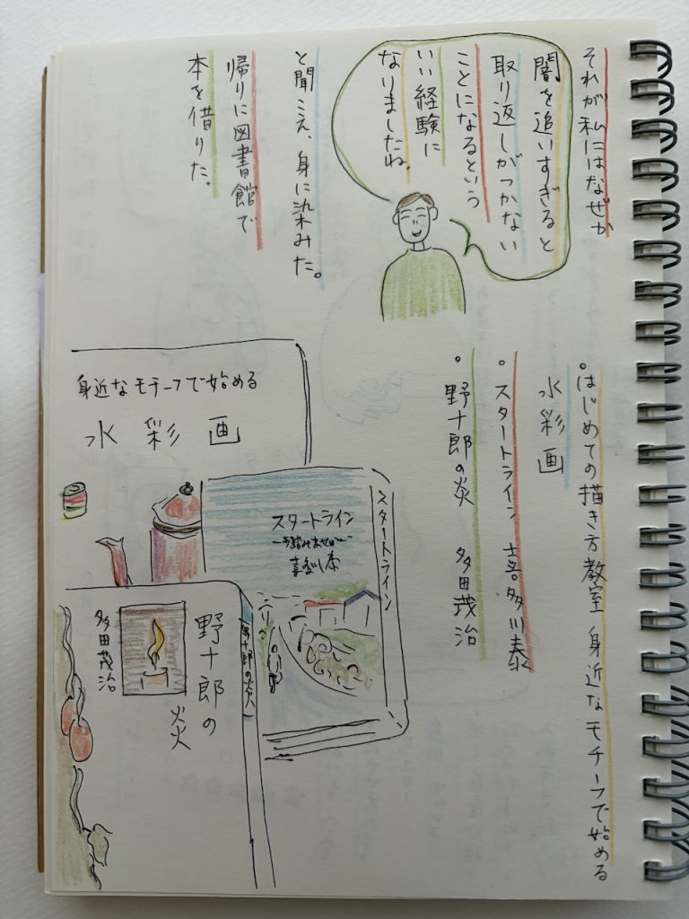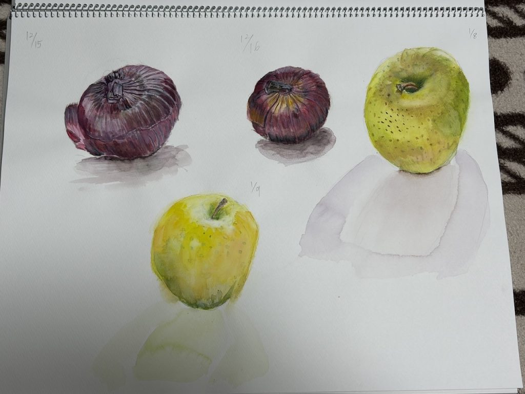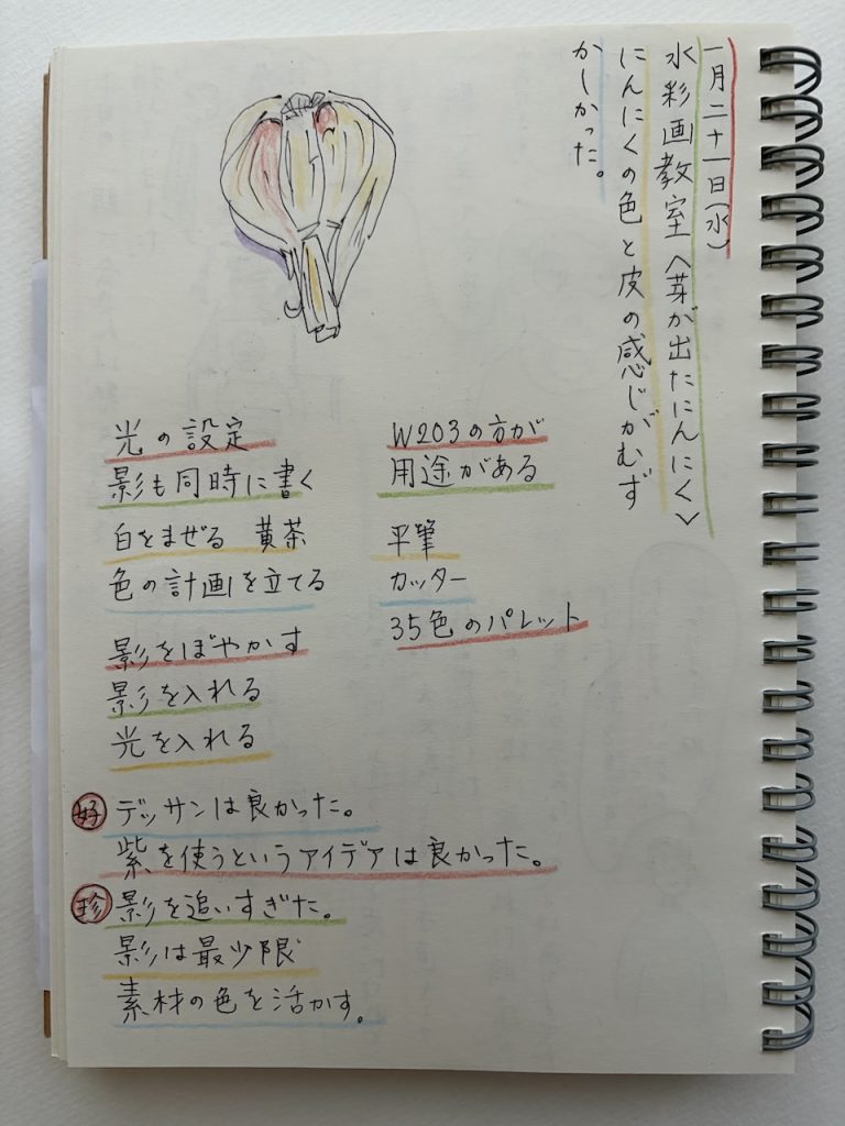 美術部の頃は私の絵の良さは配色だと言われていましたが、今回の教室では先生二人ともに「デッサンの目」がいい、と言われて嬉しいです。