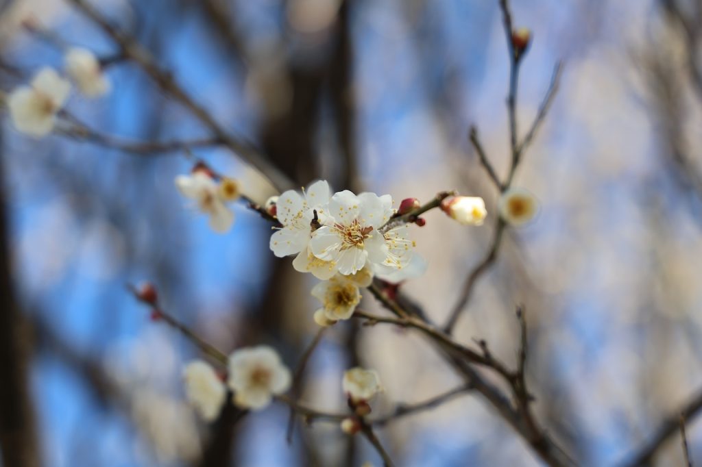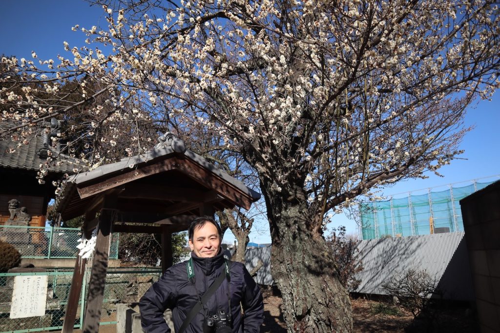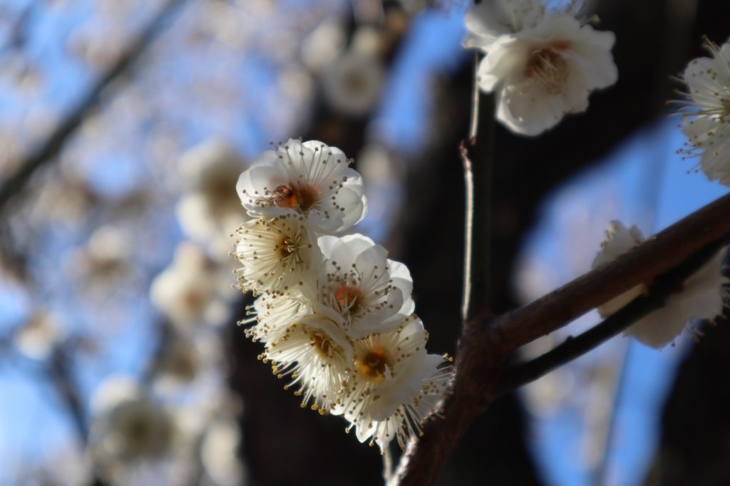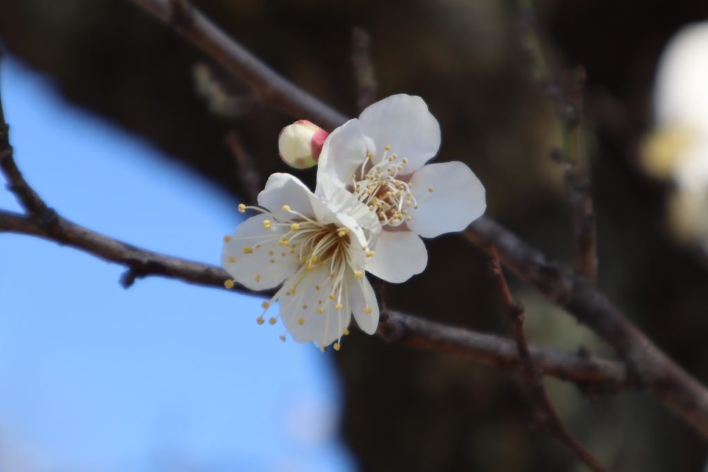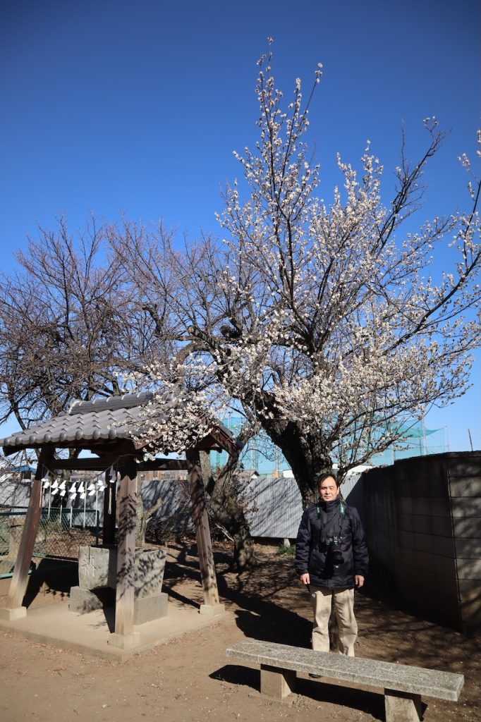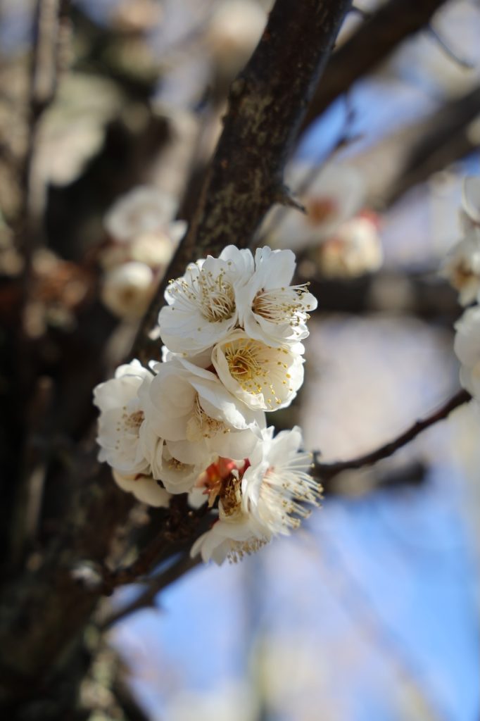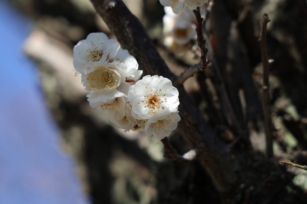 近所の神社にお散歩に行きました。何本かの梅は咲いていました。