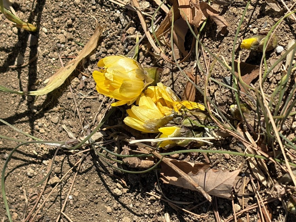 少々早く着き、お店の前の公園で、オットが福寿草を見つけました。