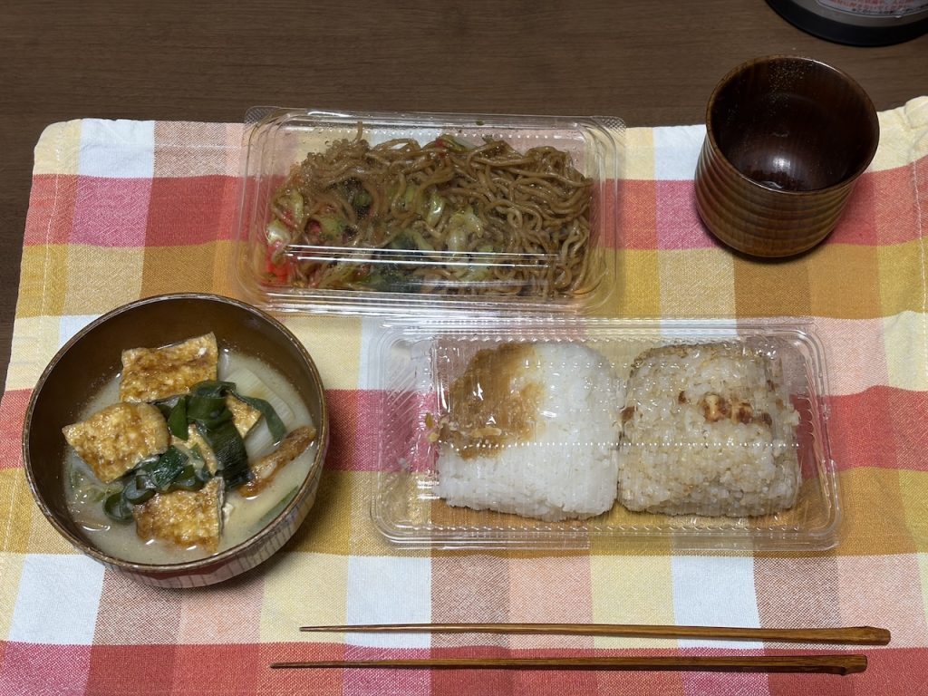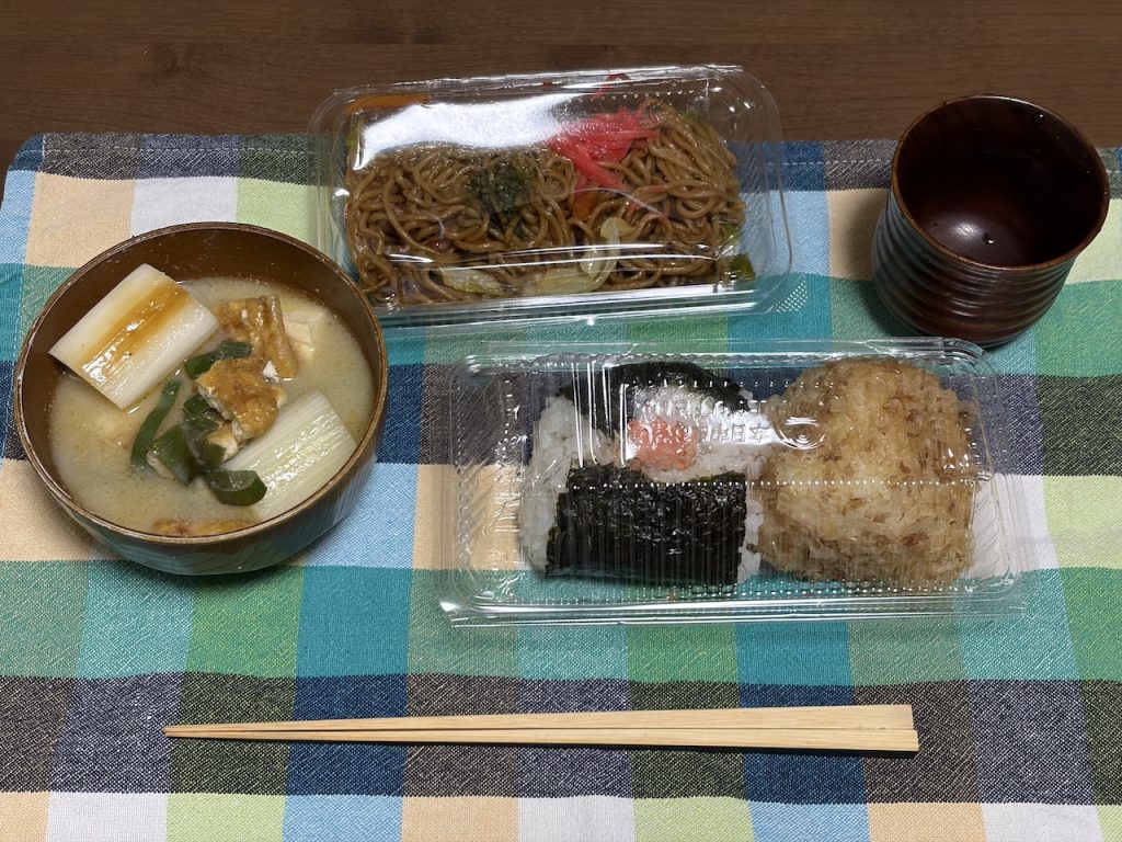 行きに焼きそばを買っていたのに、帰りにおにぎりと美味しいお豆腐を買ってしまいました。