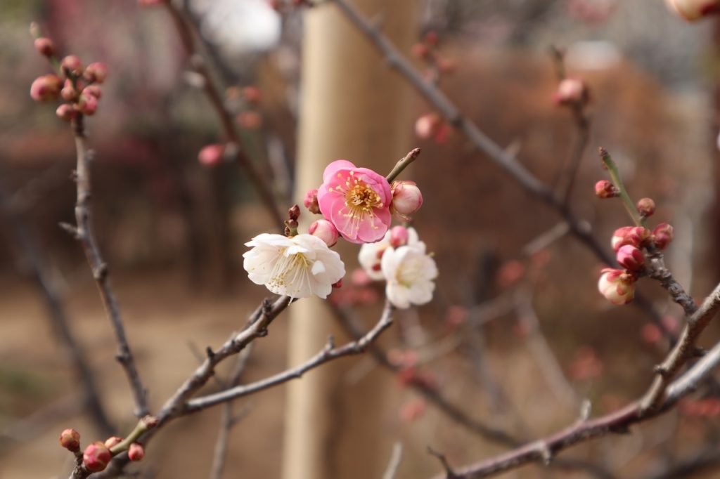 太鼓の演奏を聞きながら見られる梅まつりです。これはすごい!!