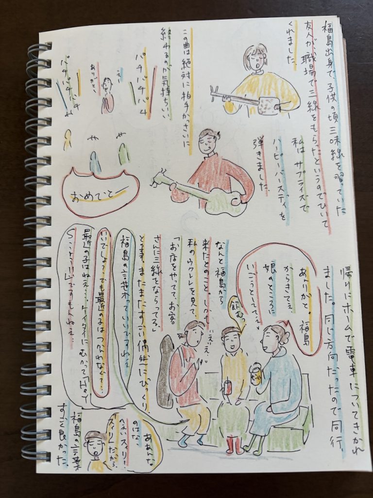 友人が三線を持って来て演奏してくれました。