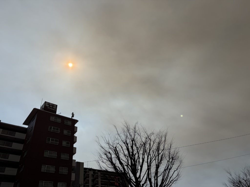 こんな色ごしの光なので、まるで夕方のようでした。