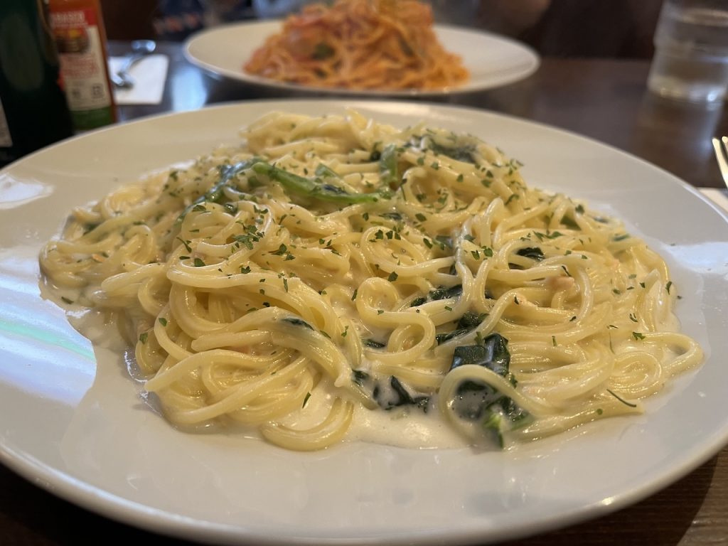 肌寒くなるとお楽しみは近所の喫茶店のクリーム系のソースがかかったパスタです。