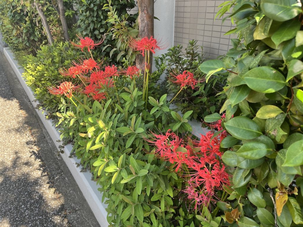 先週は咲かないと話題だった彼岸花が満開になりました。