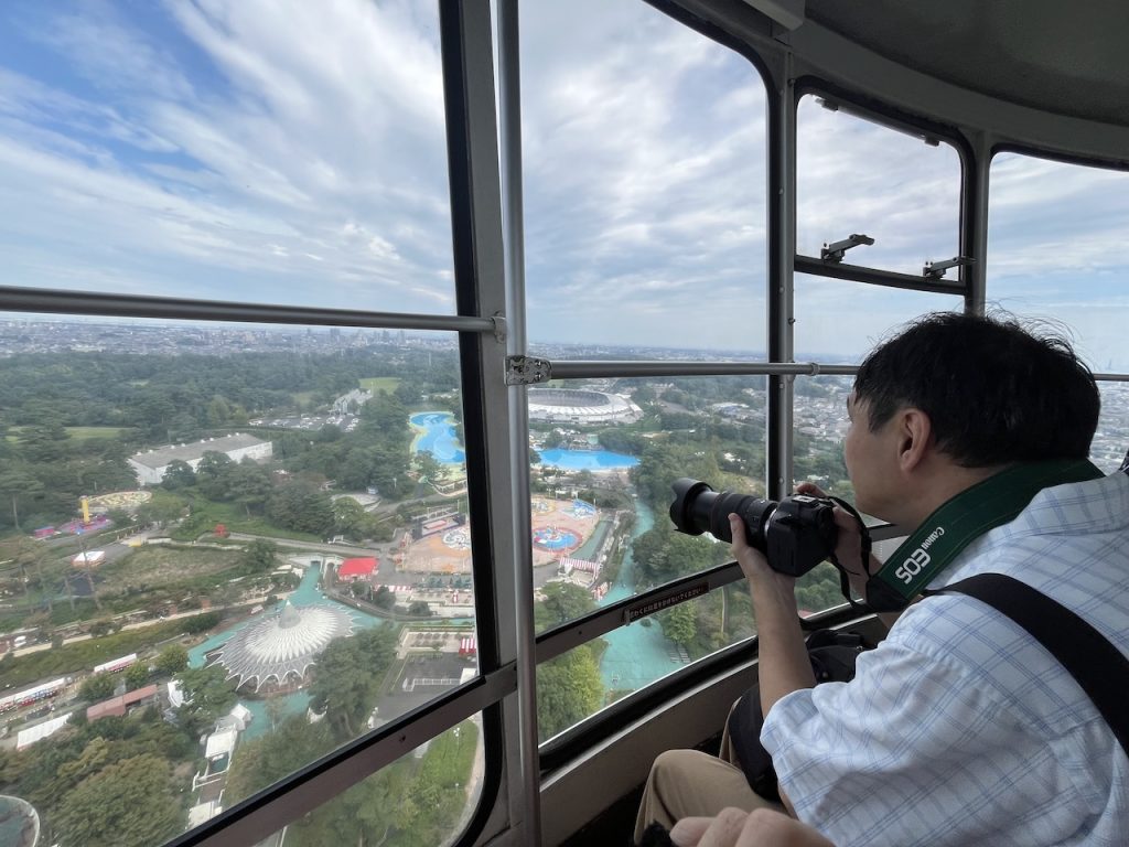 展望塔へ。富士山は見られませんでしたが、スカイツリーなど見えて楽しかったです。