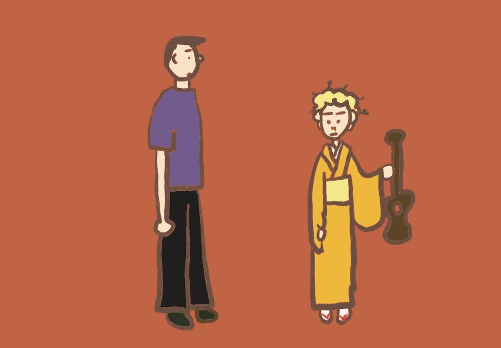 秋らしい色を着たくなったウクレレのお稽古日、先生もそんな気分だったようで、なんだかハロウィンに浮かれているみたいな組み合わせになりました。