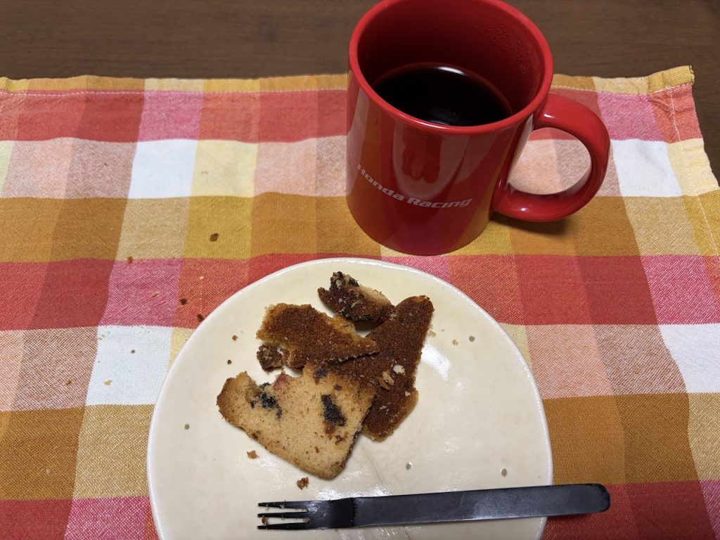 ケーキの切り落とし、ついに底の方のフルーツケーキに到達しました。