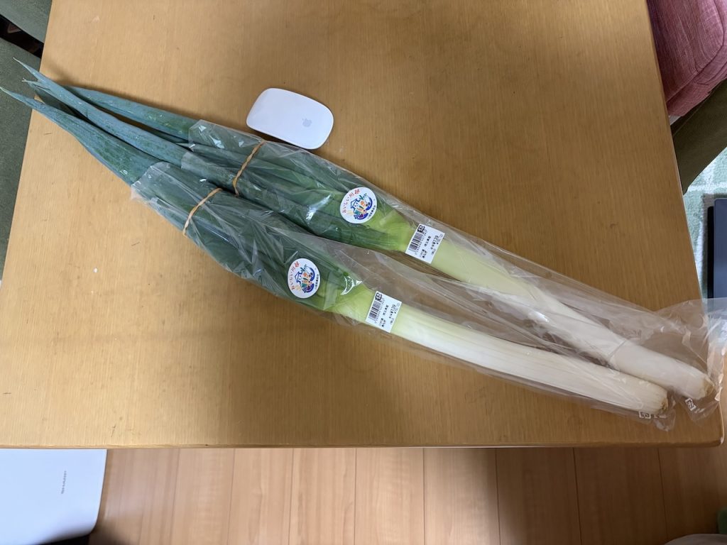 本日のリクエストはお味噌汁。地元のネギを買いに行きました。