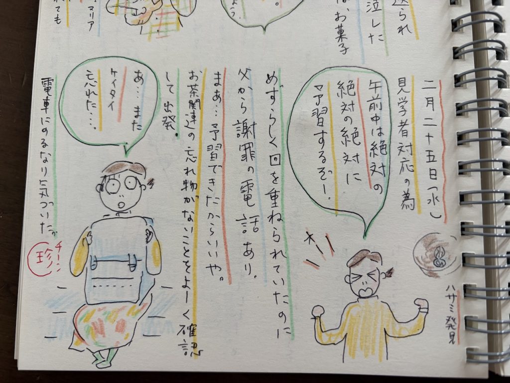 しっかり練習して、あと一回ずつやったらおしまい、と思っていたら、、、父から電話がかかってきました。謝罪です。