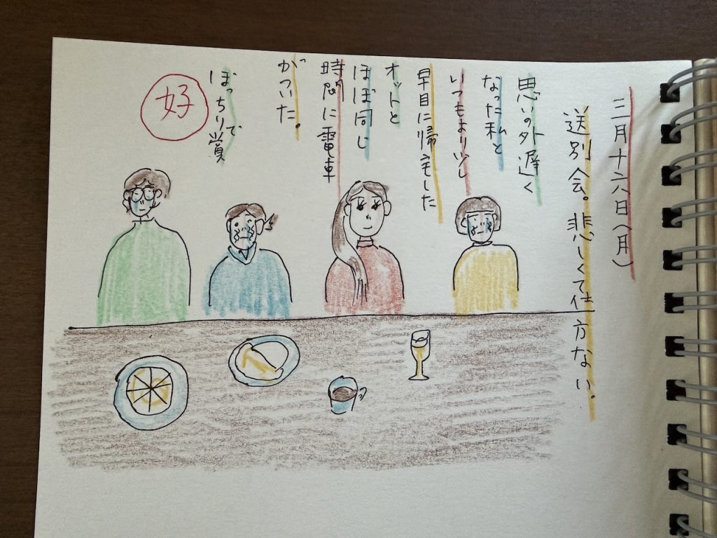 本日は一番若い仲間が、大学に入り直し、4月から遠くに行くというので送別会をしました。